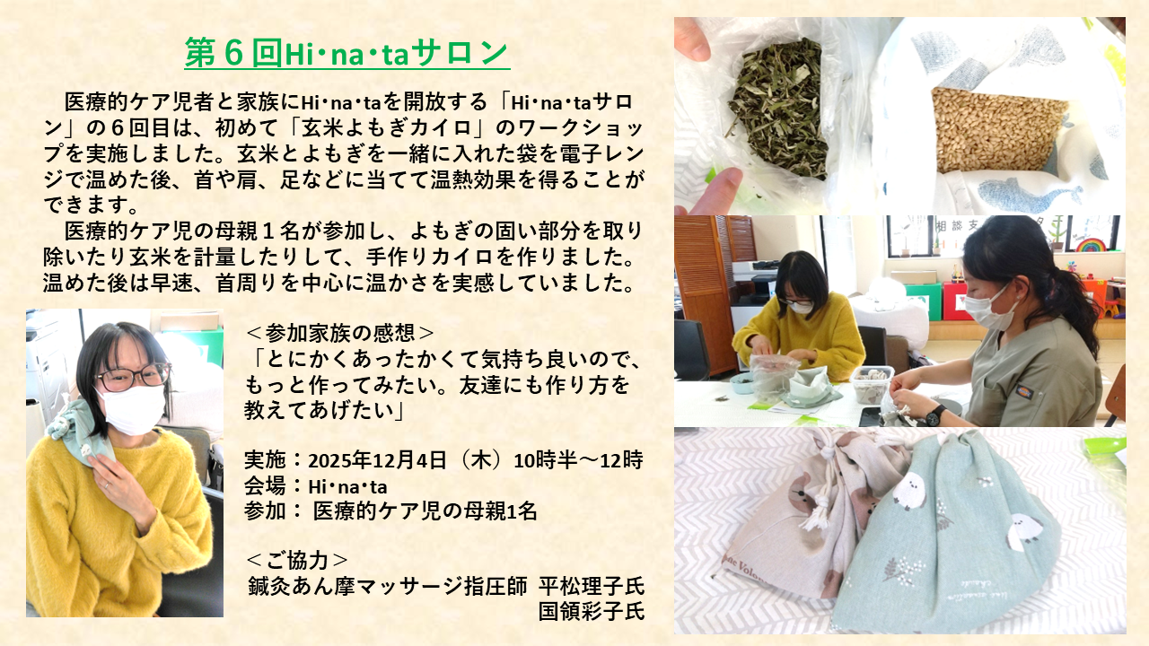 医療的ケア児者とご家族にHi・na・taを開放するHi・na・taサロンが1年半ぶりに再開しました。